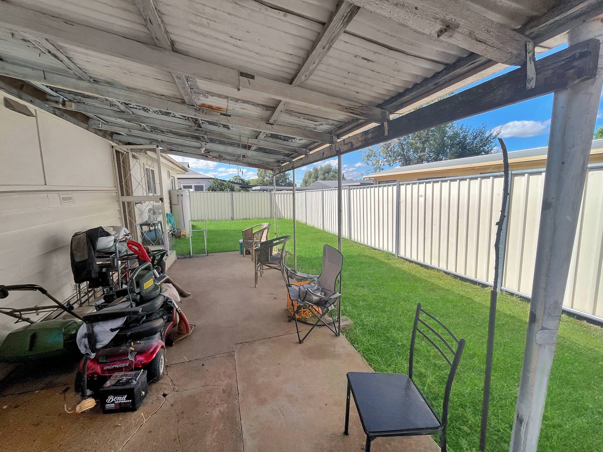 13a- 3 bedroom weatherboard residence. electric appliances and reverse cycle air conditioning. Under cover outdoor area, private back yard and a single carport. currently tenanted at $210 per week.