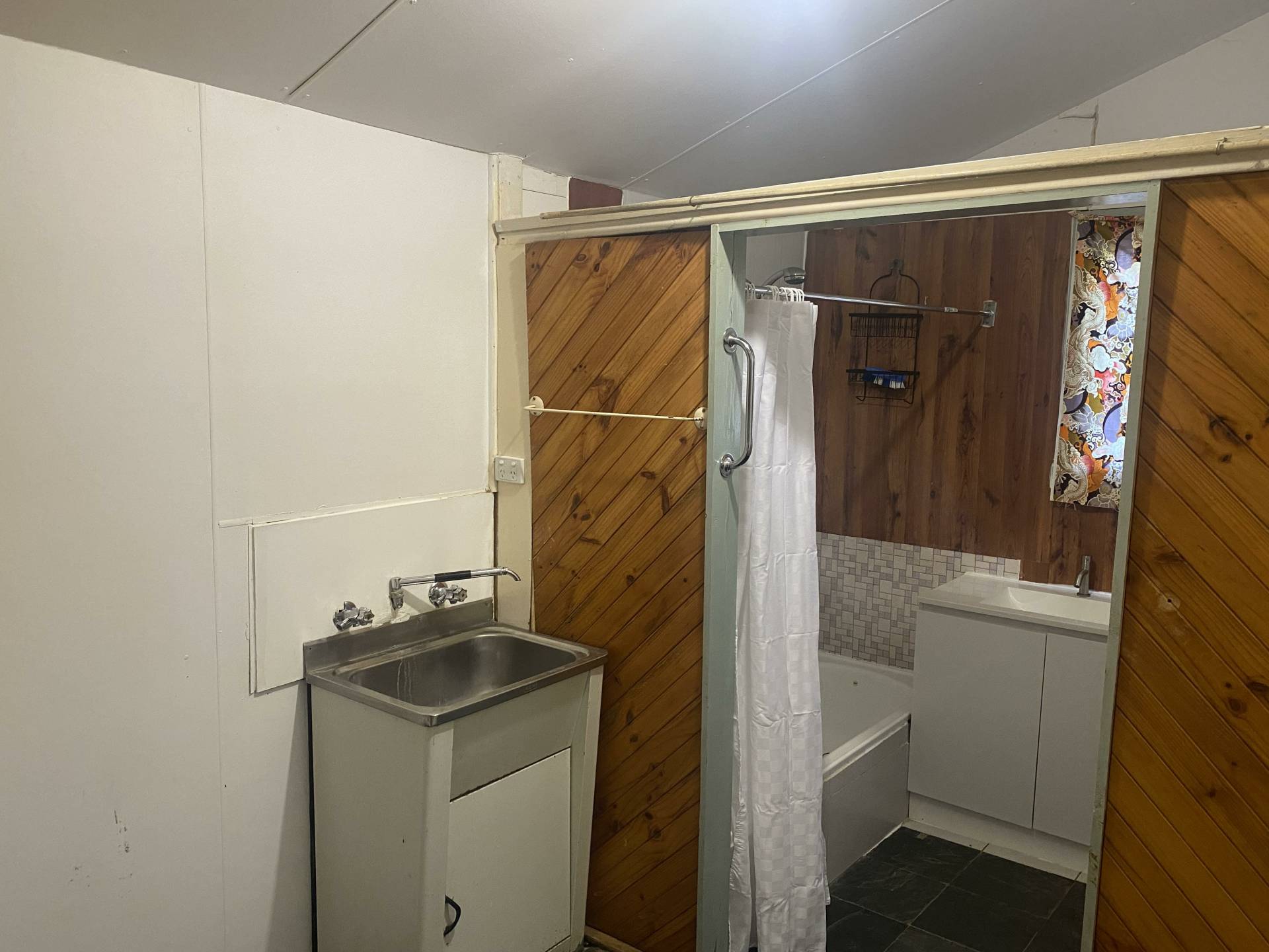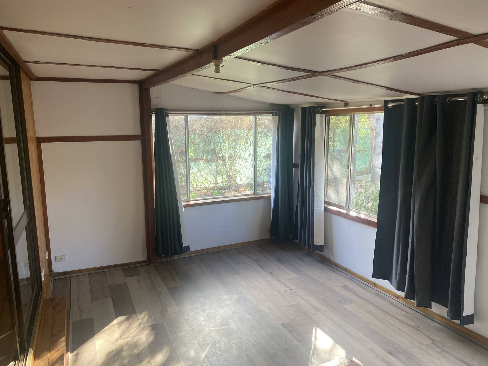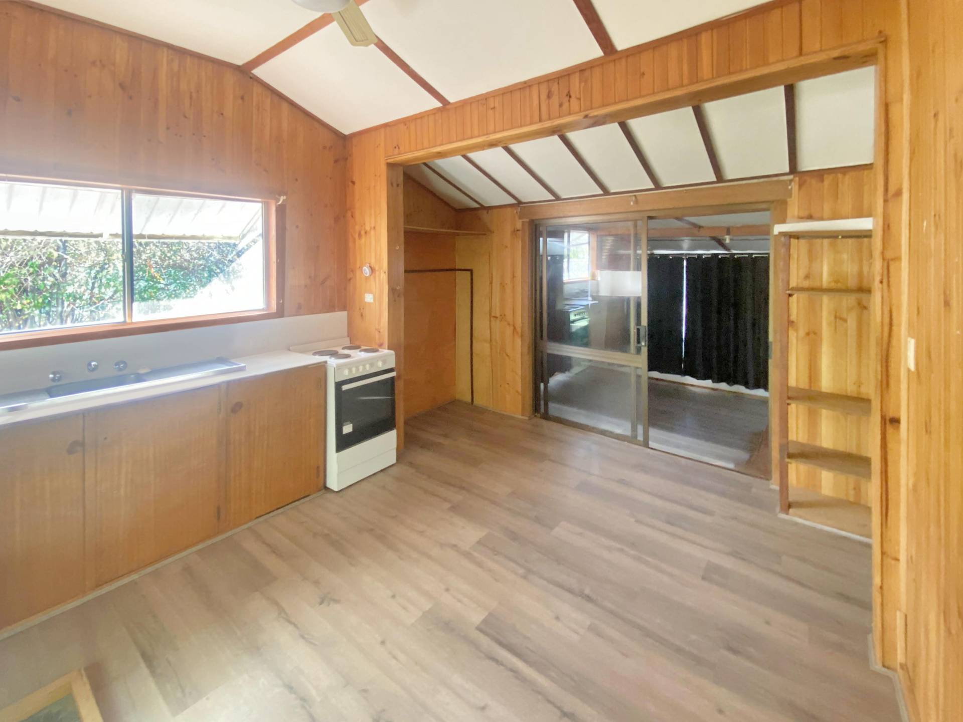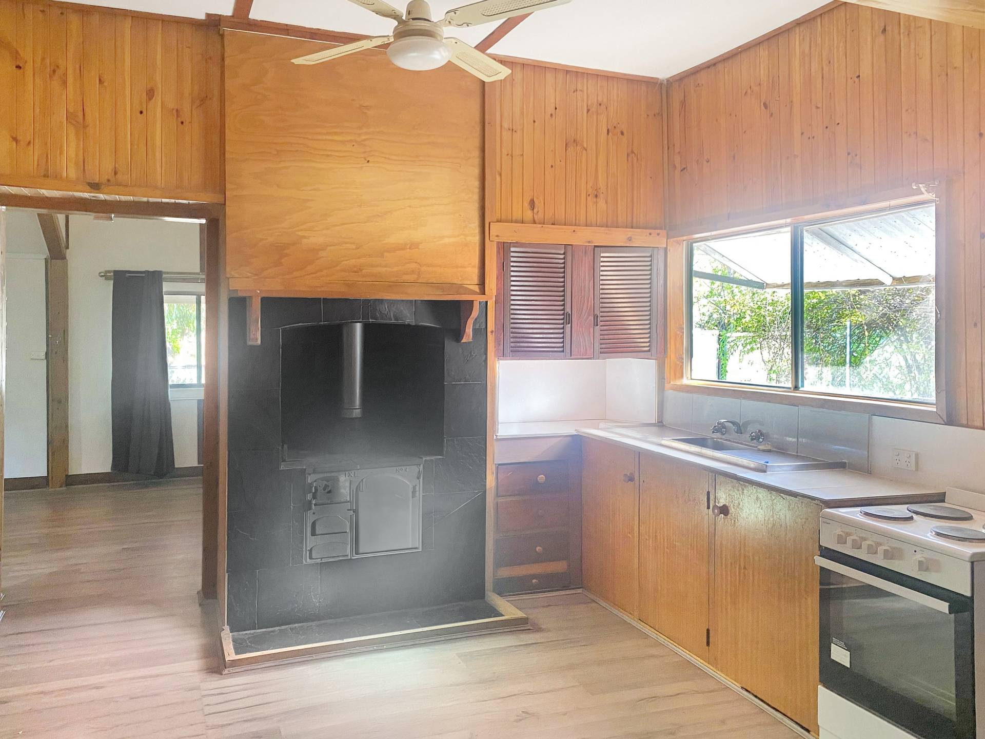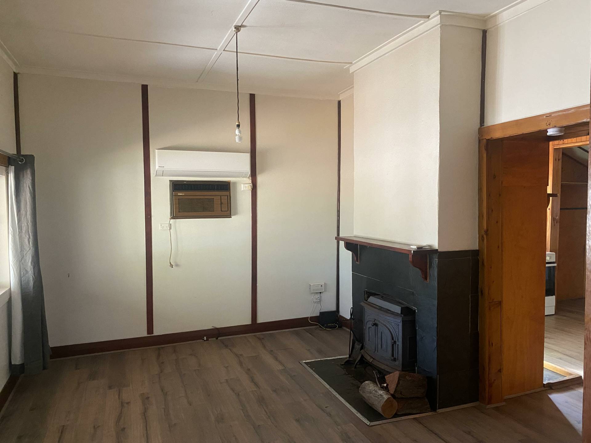 The formal lounge is complimented with wood fire and split system heating/cooling whilst positioning a central hallway. Both bedrooms are spacious and provide a built in robe in bedroom two. The shared laundry/bathroom has a single vanity, shower/bath and toilet. The kitchen provides electric cooking, cabinetry and ceiling fan whilst also having a second living/dining area at the back of the home.