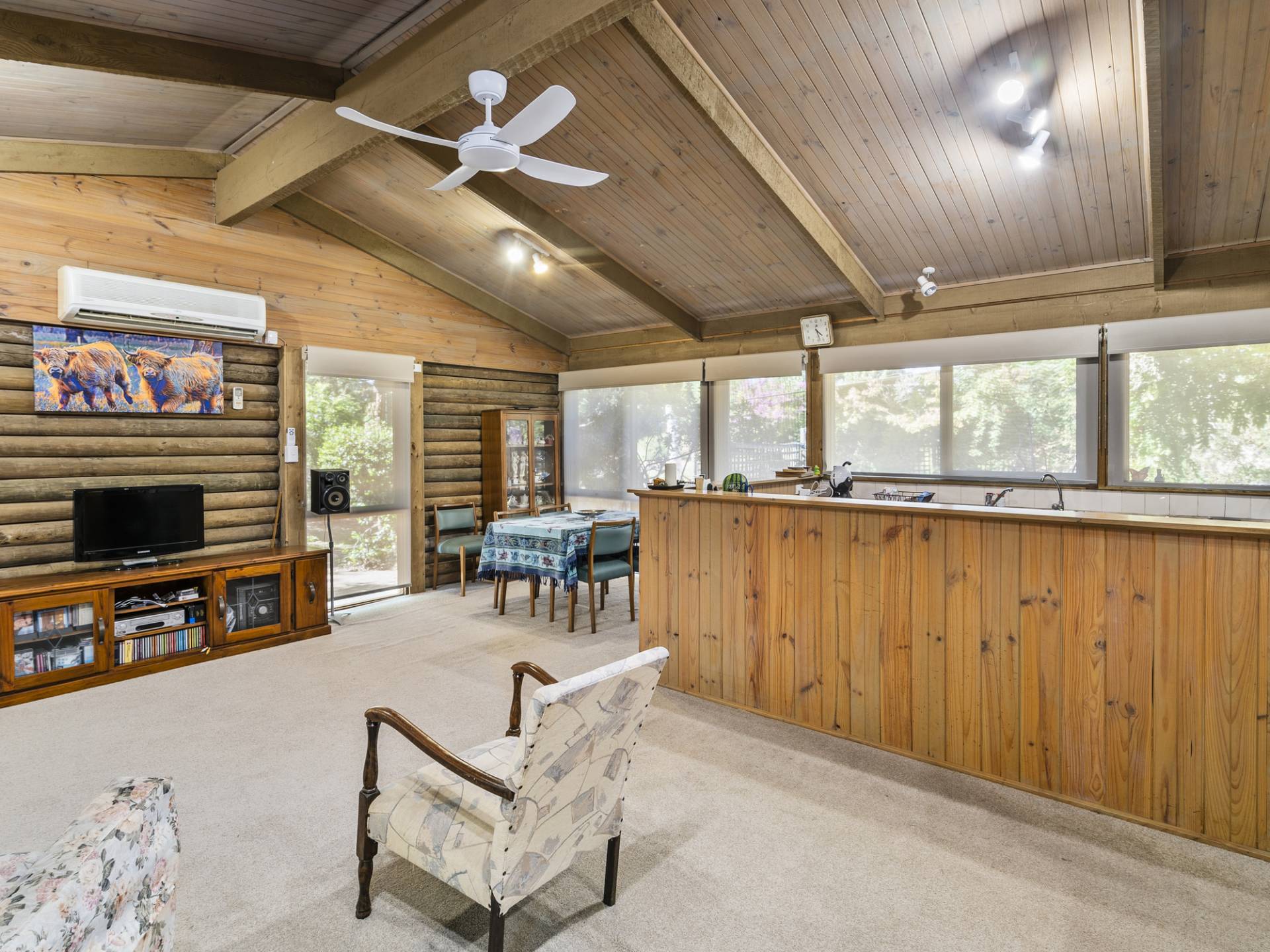 Complimenting three bedrooms all with built in robes whilst the master bedroom has split system heating/cooling. Relax in the open plan living room that features a bar, ceiling fan and day/night roller blinds whilst the efficiently designed kitchen has a dishwasher, ample bench spacing and double door fridge storage. The family bathroom has a separate shower, bath and shaving cabinet whilst the laundry provides external access and toilet. Unwind under the private decked patio that's shaded by gardens, with the front of the property having a verandah that will offer resistance to the afternoon sun. Store your vehicles in the 8m x 4m shed and double carport that has drive thru access. Additional features include timber cathedral ceilings, split system heating/cooling in the living area, hallway linen cupboard and additional shed storage.