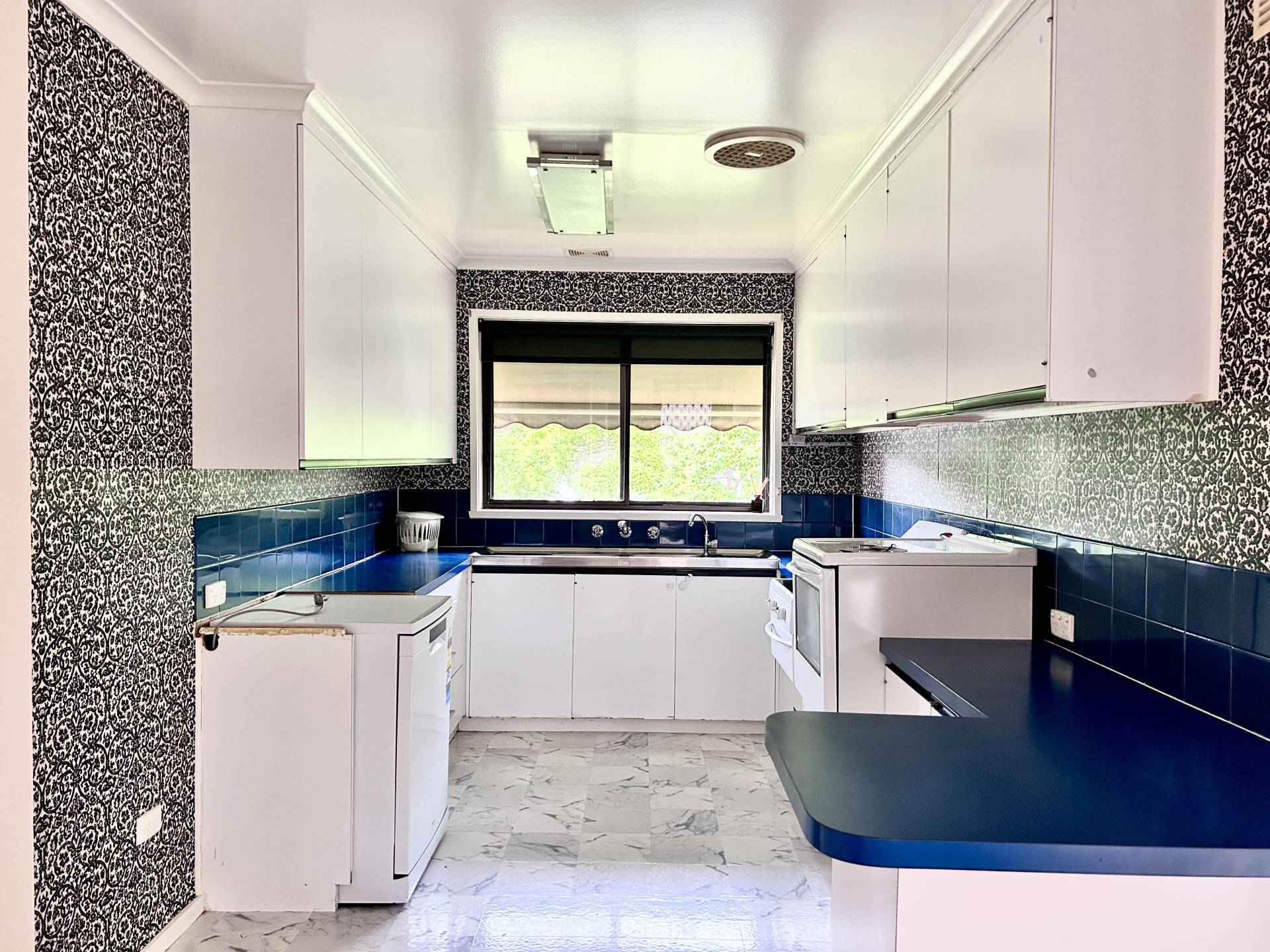 Electric cooking and dishwasher servicing the kitchen, ducted natural gas heating and ducted evap cooling for all year comfort.