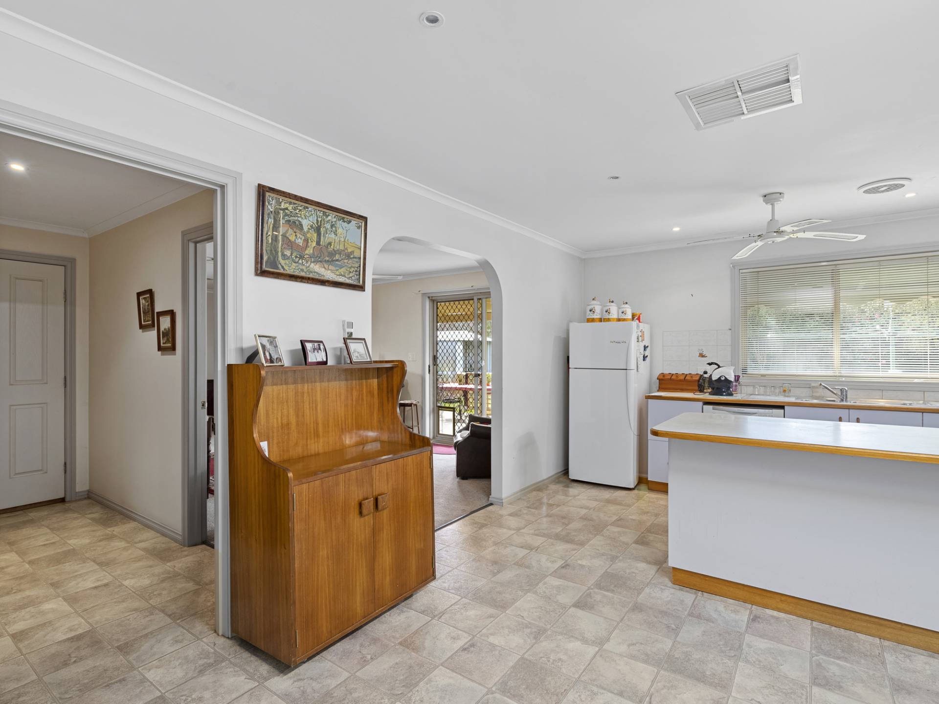 The home consists of three bedrooms, with built in robes in three rooms and ceiling fans in two rooms whilst the family bathroom has a shower, bath and vanity. The kitchen is a great space that has electric cooking, dishwasher, ample bench spacing, downlights and overhead cupboards whilst also having a meals area off the side that adds extra convenience. Relax in the formal living, complimented with natural lighting and sliding door access to the backyard.