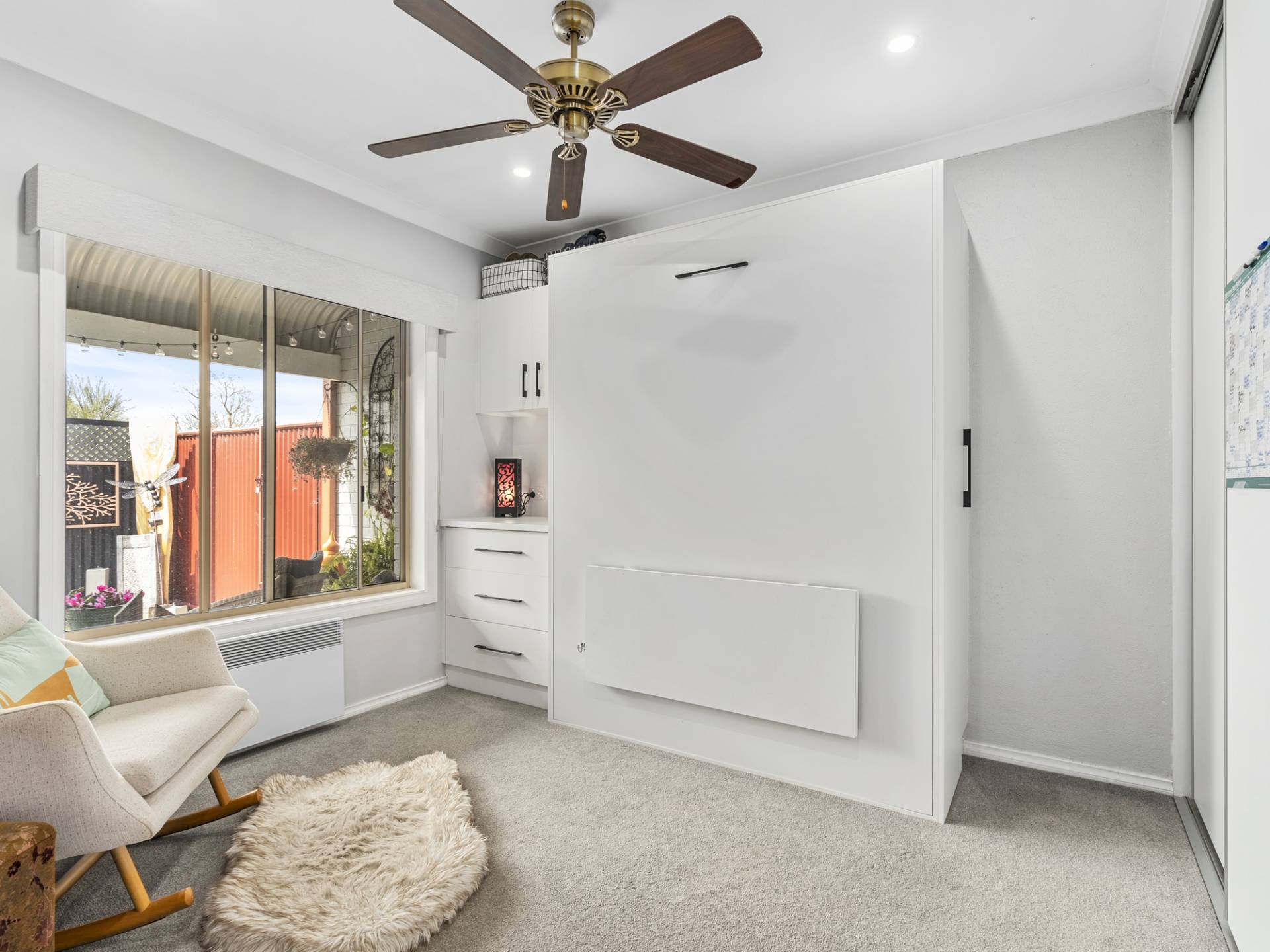 Upon entry you are welcomed to an open plan living that has hardwood floors, downlights and ceiling fan whilst flowing through to the well appointed kitchen that provides ample drawer storage, Smeg cooking appliances, dishwasher and large fridge cavity. The bedrooms are a great space that both have updated carpet and ceiling fans, whilst bedroom two has a built in robe and a Murphy Bed that also has additional storage built in and desk that adds further convenience. Enjoy the fully renovated bathroom that is full of eye catching details that includes a shower with a built in niche, vanity with two drawers, bath and separate toilet. Step into the secure and private rear yard that also offers a great space for entertaining with the pergola having automatic roller blinds that will be a great feature in the warmer months.