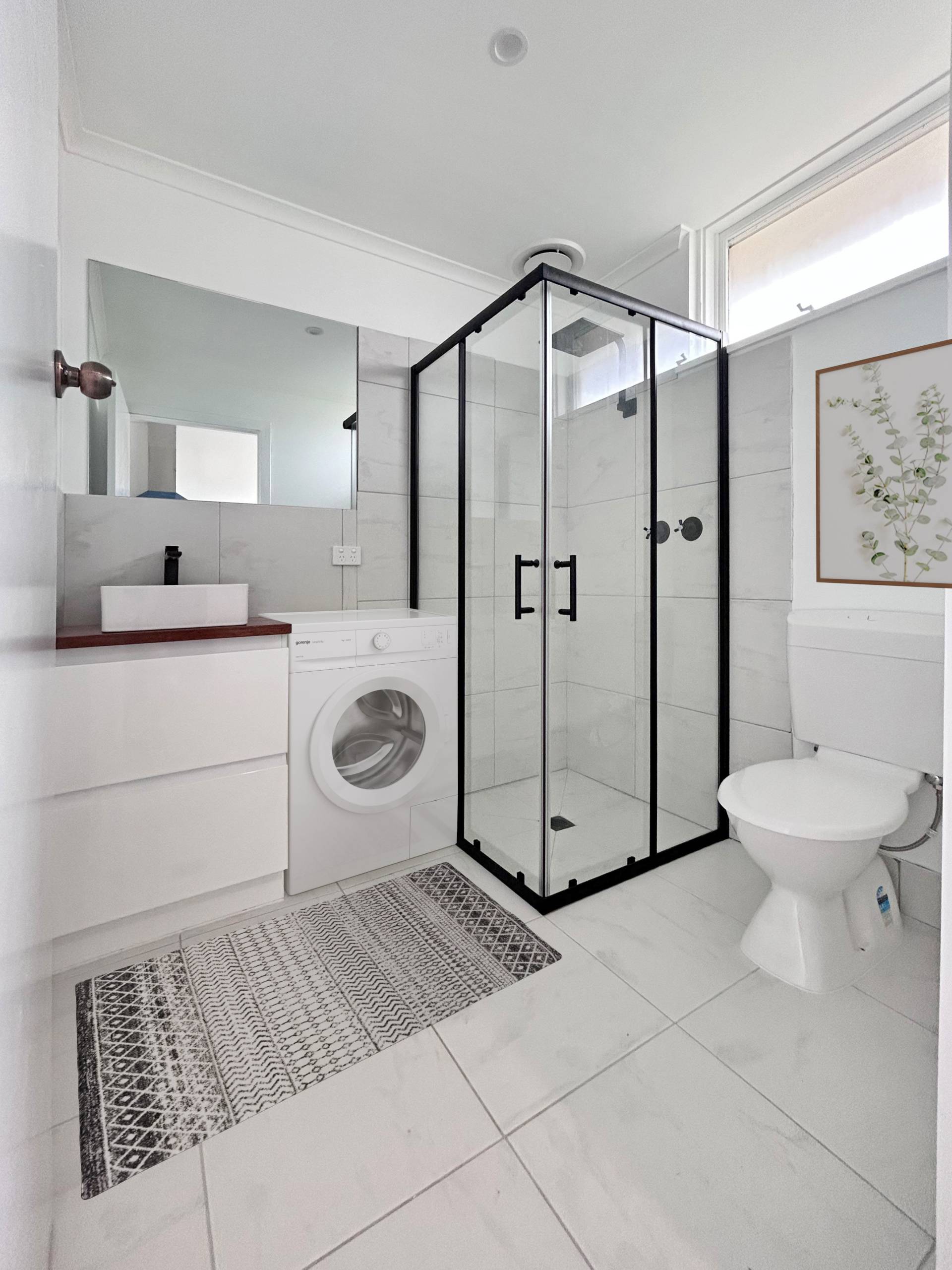 Newly refurbished unit with full size kitchen and bathroom/laundry facilities.