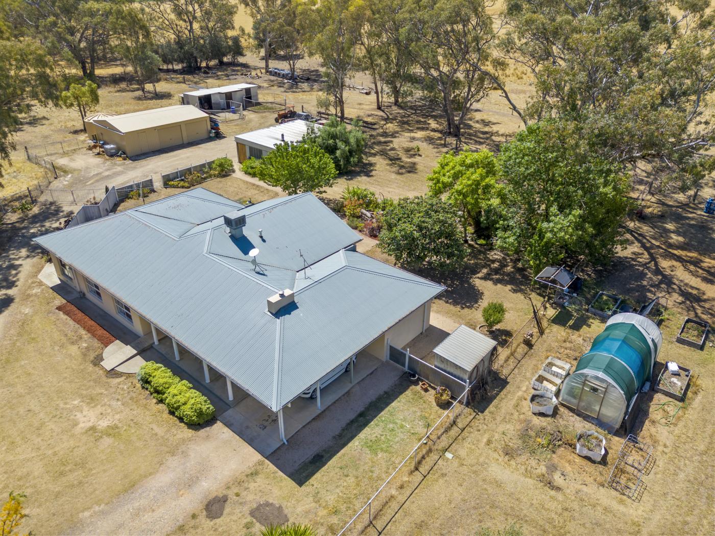 The property has five paddocks with stock troughs installed, with additional features including established trees to provide shade for livestock, fruit orchard, single carport, town water, 33,000L rainwater tank water, natural gas, evaporative cooling, ducted floor gas heating, ceiling fans, wireless NBN, double glazing and Murray pine flooring to the homes extension.