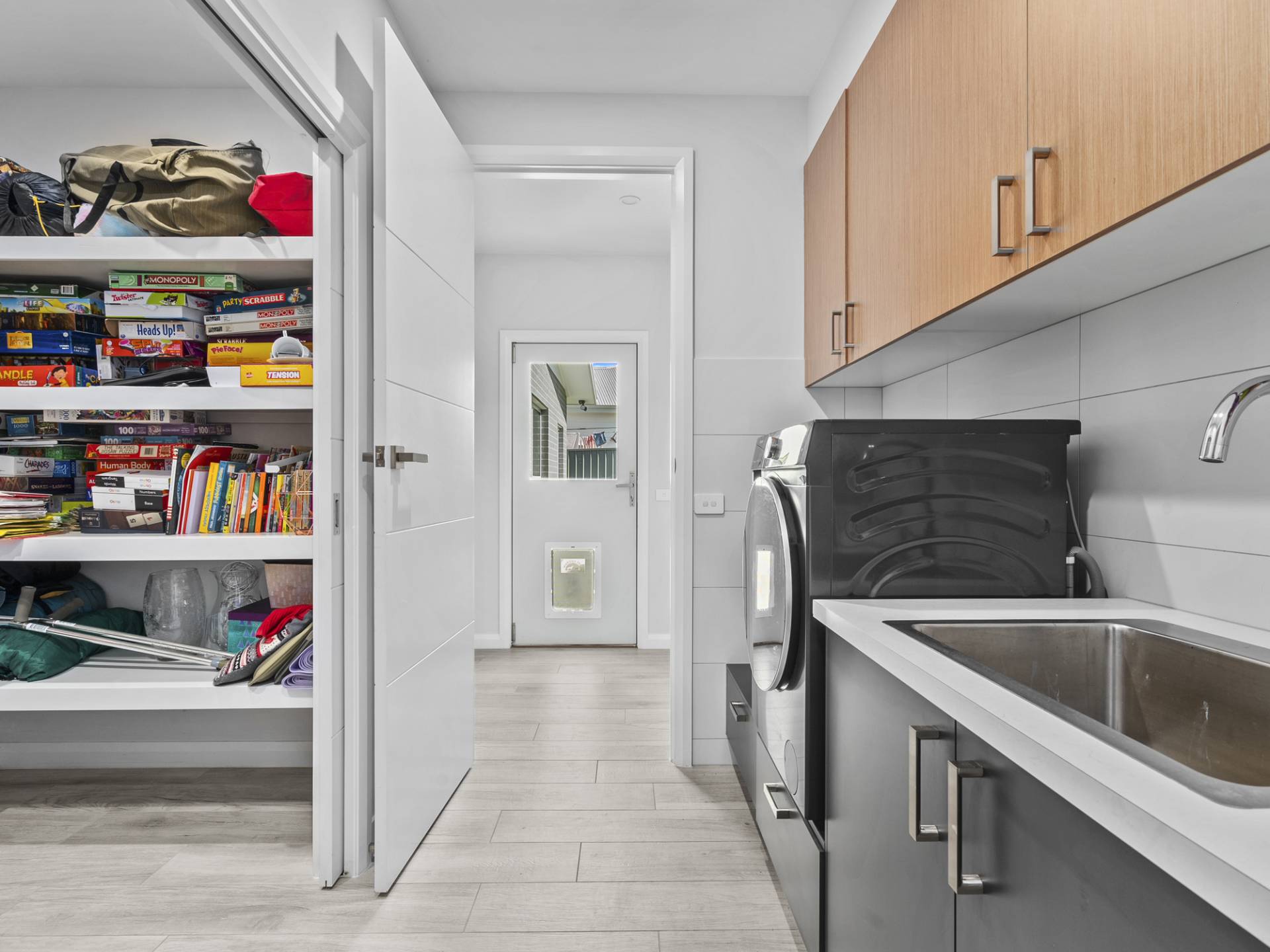 The homes storage is sorted with the  laundry boasting a with a walk in linen press with shelving and additional cupboard/drawers to compliment the ample bench spacing that is provided whilst the additional mud room provides internal access into the garage.