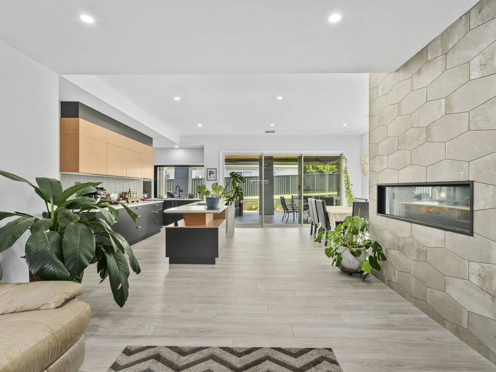 The home consists of four bedrooms that all have ceiling fans with the master suite having a walk in robe, ensuite and being conveniently located to the rear of the home whilst the remaining three bedrooms having spacious built in robes. The family bathroom has a touch of class throughout with the floor to ceiling tiles, shower with niche storage, bath and vanity that provides extensive bench spacing whilst the third living room will provide a great area for a kids retreat/guest living area that is positioned within the bedrooms. The elegant open plan kitchen will catch the eye to all the home chefs with the vast space that is provided with the island bench, cupboard storage, electric cooking, dishwasher, bi-fold windows to the outdoor area and walk in pantry whilst the colour choices blends perfectly with the open plan family room that has a tile feature wall, gas log fire and downlights.